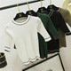 2017韩版春季复古圆领修身五分袖打底衫女撞色弹力中袖针织衫上衣