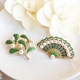 欧美气质绿色珍珠滴油胸花 绿叶珍珠复古胸针 扇子 独特披肩扣女