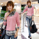 2017春季新款春装格子假两件套衬衫女长袖韩版修身女士衬衣上衣