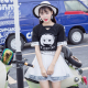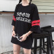 2017夏季新短袖T恤BF原宿风学生卡通字母破洞宽松中长款卫衣女潮