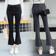 韩版高腰黑色九分喇叭牛仔裤女弹力显瘦毛边微喇阔腿休闲长裤春秋