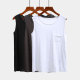 宽松背心女纯棉竹节棉口袋春夏圆领百搭开叉无袖T恤白色打底衫