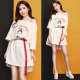 2017新款韩版时尚休闲一字领露肩上衣牛仔短裙套装裙两件套女夏装