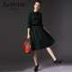 品牌女装气质显瘦绿格子连衣裙春秋款2017新款时尚七分袖中长款