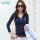 春秋新款女装打底衫韩版修身大码显瘦衬衫领上衣棉质V领长袖女t恤