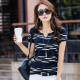 2017夏季新款韩版女装上衣条纹短袖女t恤韩版V领体恤半袖打底小衫
