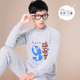 包邮青少年加厚加绒保暖内衣套装中学生大童高中领印花全纯棉男童