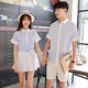 情侣装夏装2017新款套装韩版条纹短袖T恤背带连衣裙男T恤女裙子潮