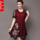 唛荻奴2017新款中年女夏装民族风绣花短袖连衣裙妈妈中长款a字裙