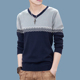毛衣男韩版潮流修身拼接圆领加绒加厚纯棉线衣青少年打底针织衫