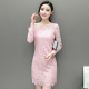 娆姿2017春装新款名媛淑女蕾丝包臀连衣裙女中长款修身长袖打底衫