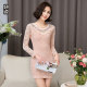 2017春装新款中长款蕾丝衫修身显瘦打底衫韩版女装圆领长袖连衣裙