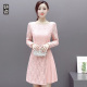 2017夏装修身显瘦A字裙短袖蕾丝连衣裙女新款韩版百搭时尚大摆裙