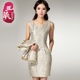玉羲2017春秋新款金色名媛小香风无袖连衣裙女奢华春秋百搭打底裙