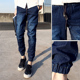 春夏季薄款九分收脚宽松紧腰牛仔裤男束脚小脚缩口束腿收口9分裤