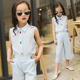 童装女童夏装2017中大童套装新款儿童夏季无袖七分裤两件套阔腿裤