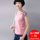 熙世界2017夏季新品圆领后背条纹时尚印花休闲短袖蕾丝衫102SS308
