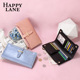 Happy Lane钱包女长款皮夹大容量油蜡牛皮两折简约韩版多功能钱夹