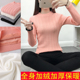 半高领长袖纯棉加绒加厚T恤女士打底衫长袖衣服秋冬季装外穿上衣