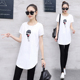 夏装2017新款女士装中长款短袖t恤纯棉字母上衣服白色修身打底衫