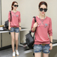 2017春季新款中长款宽松长袖T恤女上衣时尚亮片百搭大码打底衫女