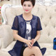 中老年女装夏装假两件40-50岁妈妈装短袖T恤中年人大码夏季服装60