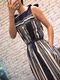 Ly2x 夏季蓝白条纹性感露肩绑带束腰中长款连衣裙