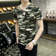 夏季韩版V领迷彩短袖T恤男修身学生弹力冰丝t恤印花潮流薄打底衫