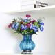 台面蓝色透明花瓶客厅装饰品摆件欧式经典仿真花花器摆设乔迁贺礼