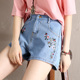 牛仔裤女2017夏季女装新款韩版绣花高腰显瘦牛仔短裤阔腿裤热裤潮