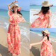 显瘦大码一字领荷叶边露肩海边度假波西米亚雪纺连衣裙沙滩裙长裙