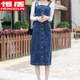 恒盾2017春夏新款显瘦女学院风大码百搭长裙休闲牛仔背带裙连衣裙