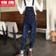 2017秋冬新款大码宽松牛仔裤两穿背带裤学院女直筒学生长裤胖妹妹