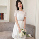 2017夏装新款女白色蕾丝连衣裙中长款修身显瘦气质淑女a字裙短袖