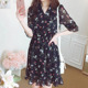 碎花雪纺连衣裙女夏季2017新款韩版时尚立领修身收腰裙子短袖印花