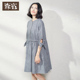森宿P记号水饺春装女修身复古小清新文艺格子棉麻衬衫连衣裙中裙