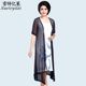 中老年女装夏装长袖连衣裙中长款大码妈妈装显瘦减龄印花裙雪纺裙
