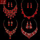 新娘项链耳环二件套红色水钻结婚敬酒服饰品婚纱配饰韩式伴娘首饰