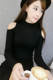韩国代购春夏季性感露肩圆领长袖针织打底衫套头女毛衣弹力连衣裙