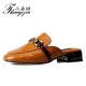 半拖鞋女2017春新款粗跟包头半拖鞋女夏懒人单鞋中跟英伦风小皮鞋