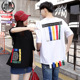 2017夏季港仔情侣装短袖t恤衫韩版学生个性织带T恤潮流宽松体恤男