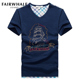 马克华菲短袖t恤男 夏季新款男士纯棉V领印花潮牌修身体恤衫