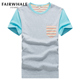 马克华菲短袖T恤 男士韩版修身刺绣拼接V领短体恤衫潮夏装新款
