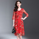 雪纺印花连衣裙夏中长款高端中年妈妈装大码显瘦海边度假沙滩裙子
