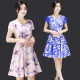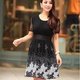 女装2016韩版新款夏装印花中长款圆领短袖连衣裙打底修身A字裙