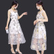 2016韩版夏装新品中长款欧根纱无袖印花连衣裙女装时尚修身A字裙