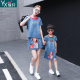 时尚套装女2017新款夏装韩版薄牛仔两件套裙修身显瘦亲子母女装潮