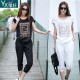 欧洲站2017夏款休闲运动套装女大码韩版纯棉短袖7分裤两件套修身