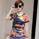 短袖T恤女2017夏装新款 韩版迷彩纯棉宽松印花T恤全棉打底衫夏季