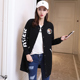 2017春装新款 韩版字母印花修身中长款外套女春秋棒球服休闲风衣